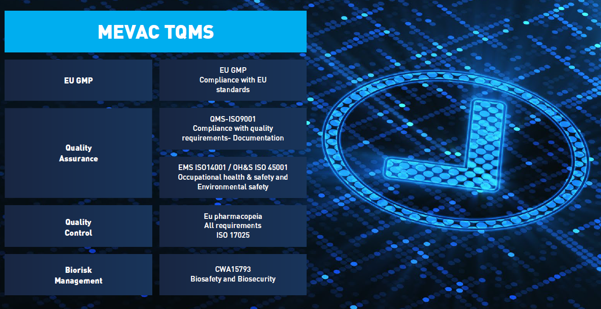 Quality planning, Quality control, Quality assurance, and Quality improvement to satisfy our customers needs & expectations through providing high quality innovative solutions & utilizing the most recent global technologies in the vaccines production with an international quality standards.